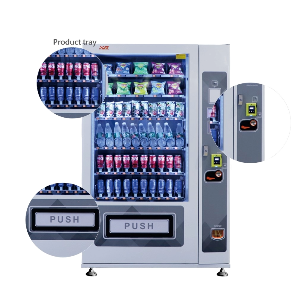 Description: This Snack and drink vending machine can be used to sell snacks and cold or room temperature beverages in office buildings, neighborhoods, subway stations, bus stops, unmanned stores, and other indoor or outdoor environments. Our vending machine can be also customized if you want to sell other unique products apart from snacks and drinks such as Pokémon trading cards, cosmetic items, Phone accessories, Toys etc. Supports the installation of a local coin and note payment system and cashless terminal payment as well.